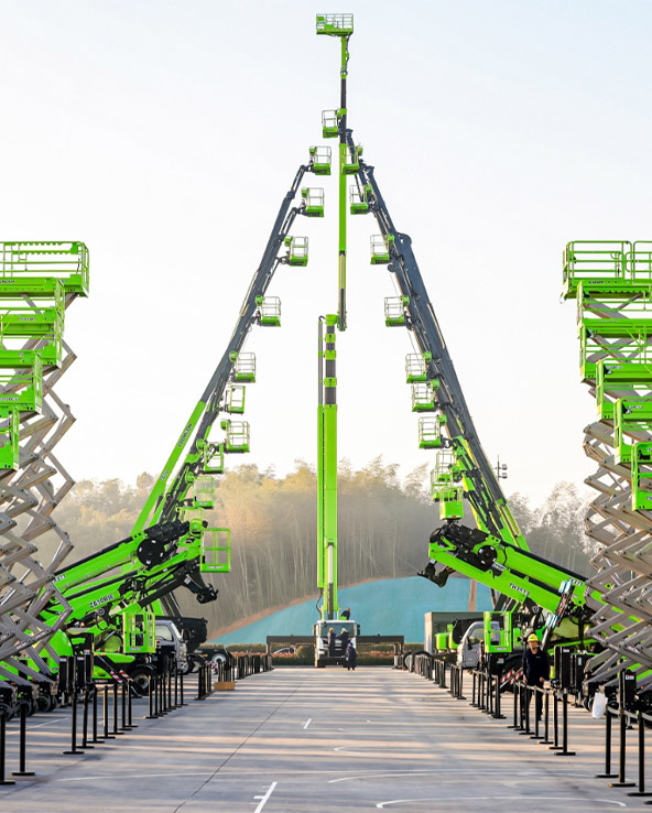 中聯(lián)重科智能高機目前有剪式、曲臂式、直臂式、伸縮臂叉裝車、車載式等七大類100余款產(chǎn)品,作業(yè)高度覆蓋6-95米,全面覆蓋市場上主流機型, 成為目前型譜最全的國產(chǎn)主機廠商,研發(fā)的產(chǎn)品在大高度、大承載力等方面達到國際領先水平;擁有全球作業(yè)高度最高的超高米段直臂產(chǎn)品。在行業(yè)內(nèi)首創(chuàng)全交流電驅鋰電剪叉,實現(xiàn)純電驅動、零排放、低噪音、節(jié)能高效、超強續(xù)航,引領剪叉產(chǎn)品的發(fā)展趨勢。